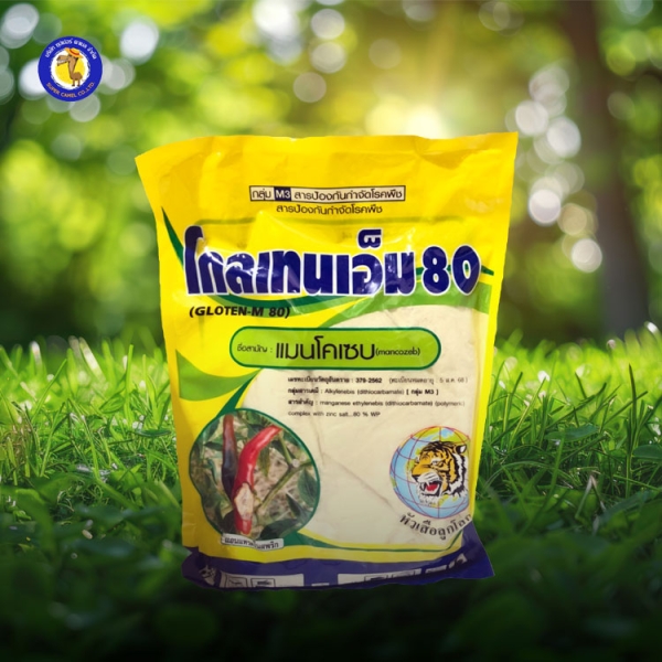คุณสมบัติ: ป้องกันและกำจัดโรคพืชในหลายชนิด เช่น โรคราน้ำค้าง ในพืชตระกูลแตง โรคแอนแทรกโนส โรคยอดเน่า โรคใบจุดตากบ โรคใบจุดสีม่วง โรคใบไหม้ และโรครากเน่าโคนเน่า